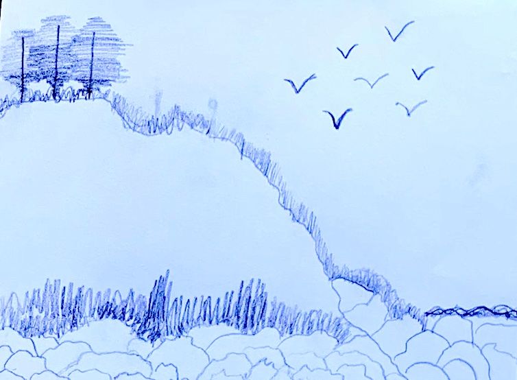 Un petit croquis de paysage au passage, avant de nous rendre à Kercroc pour la collecte de déchets.